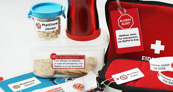 Por eso ofrecemos etiquetas y marcas especiales que advierten sobre alergias para que los demás tengan en cuenta las necesidades de tu hijo, ¡y así no correrán peligros en la escuela!